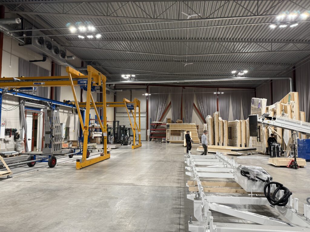 Under besöket fick vi se färdiga väggmoduler till ett LSS-boende som är klara för leverans. Målet är att ta fram ett typhus som kan fungera som grund – där Evia bygger modulväggar som är effektiva att producera och lätta att transportera.