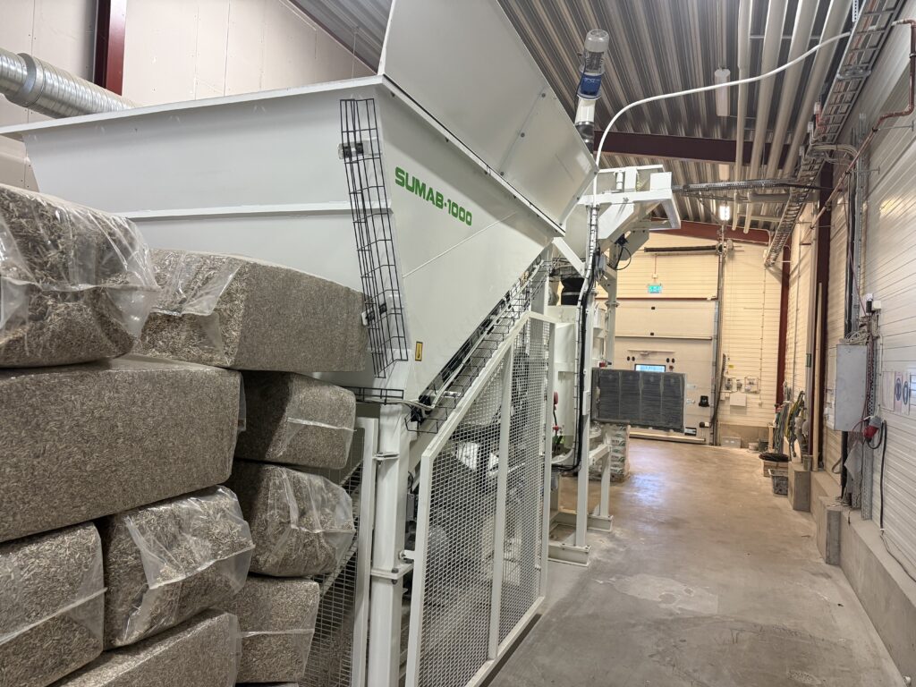 Förra veckan fick vi på Landsjö möjlighet att besöka Evias fabrik i Lindome, söder om Göteborg. Evia bygger bland annat väggar med hampa och träfiber, och vi fick en inblick i deras produktionsprocess.